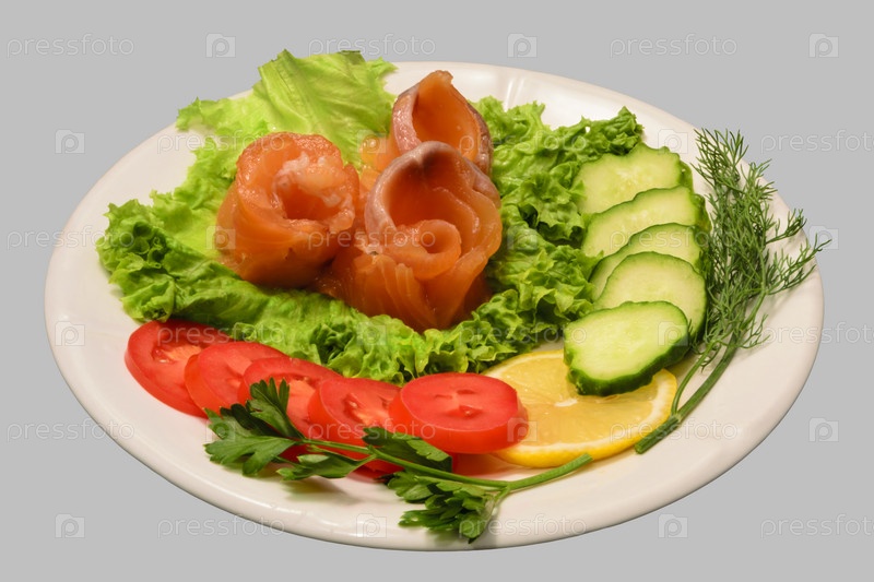 Рулеты из филе красной рыбы с зеленью и овощами
