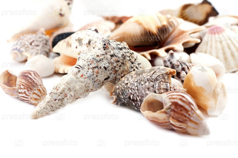 Морские ракушки на белом фоне