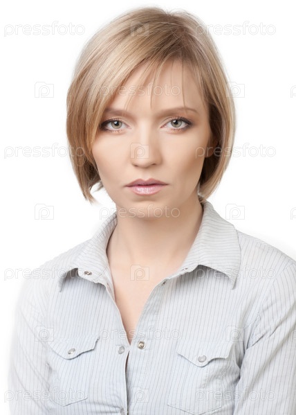 Портрет молодой красивой женщины с естественным макияжем на белом фоне