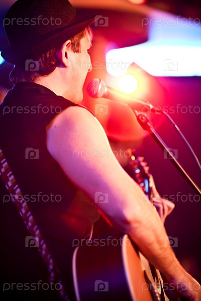Музыкант играет на гитаре на концерте