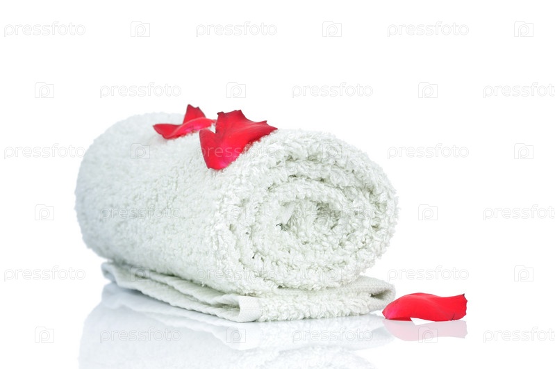 Полотенце с лепестками роз на белом фоне