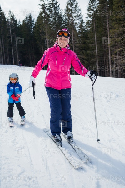 Семья на лыжах