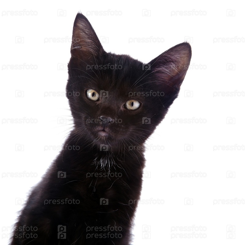 Черный маленький котенок на белом фоне