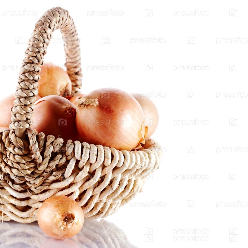 Репчатый лук в плетеной корзине