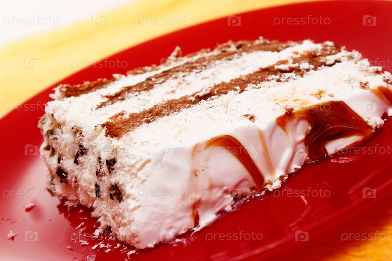 Торт на красной тарелке
