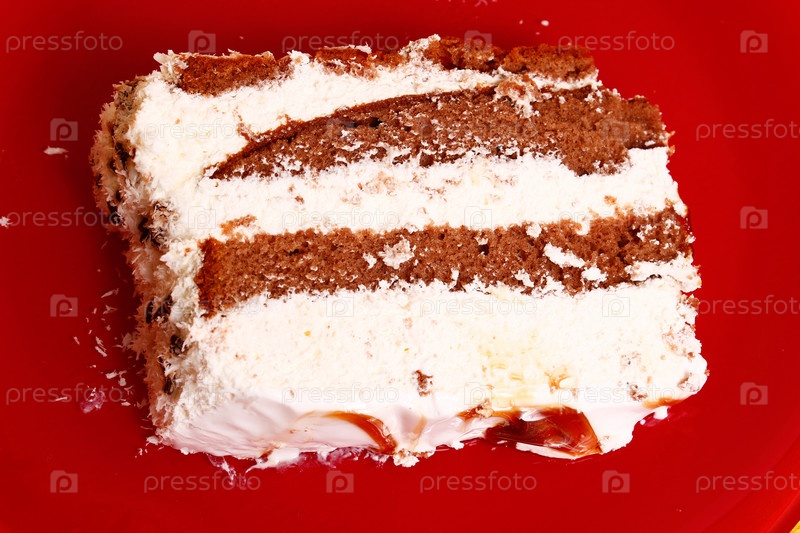 Торт на красной тарелке