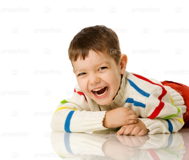 Счастливый маленький мальчик на белом фоне