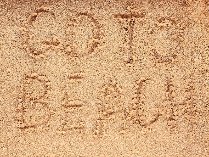 Слоган на песке. Иди на пляж