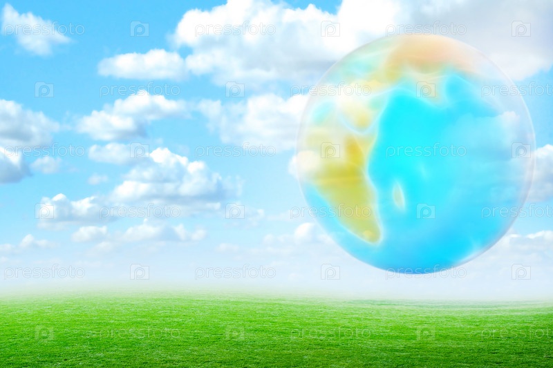 Иллюстрация с изображением зеленого поля и Земли