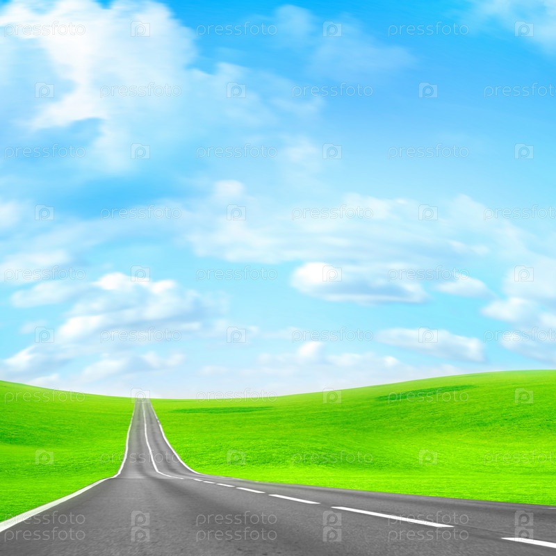 Иллюстрация с изображением дороги и облачного неба