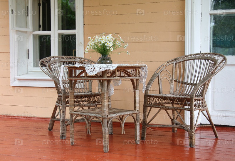 Дачная плетеная мебель на веранде дома, усадьба Мелихово
