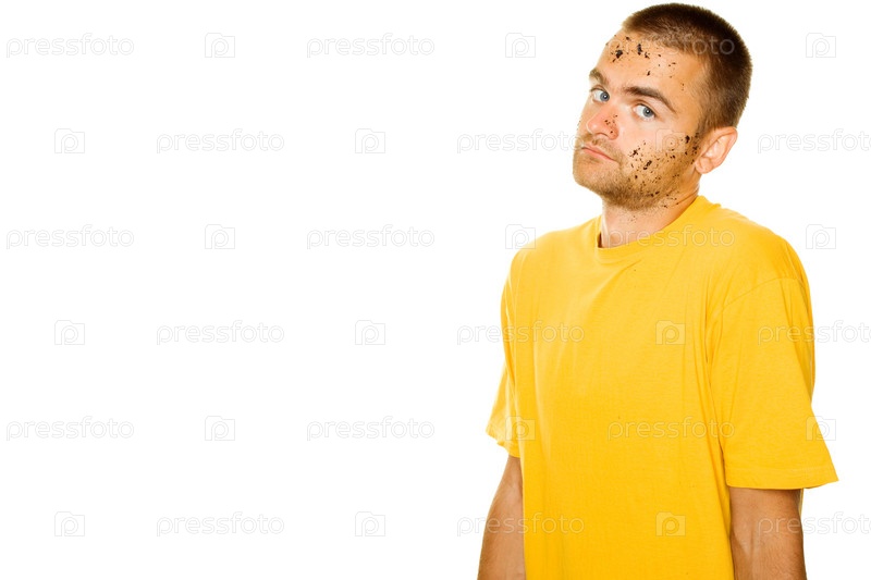 Молодой человек, испачканный землей