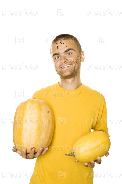 Мужчина, держащий патисоны