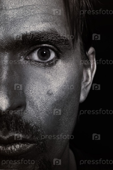Молодой привлекательный мужчина с серебристым макияжем