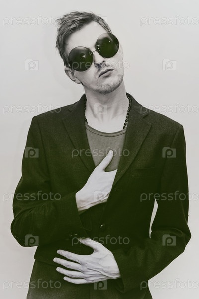Молодой человек, одетый в куртку и солнцезащитные очки