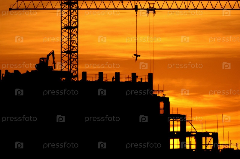 Строительство здания на фоне красного заката