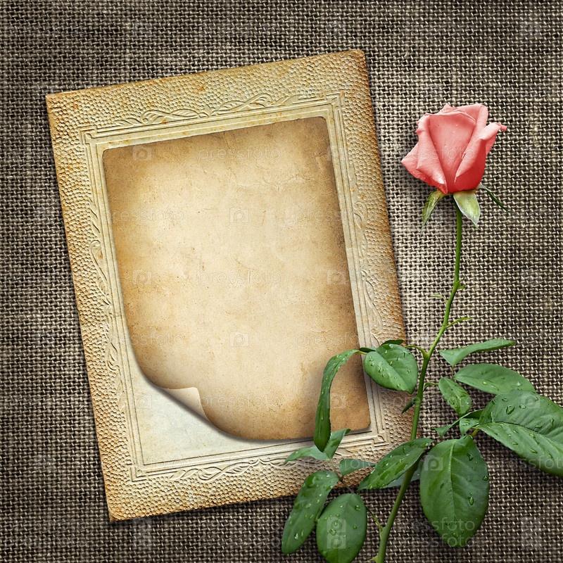 Открытка с розовой розой в винтажном стиле