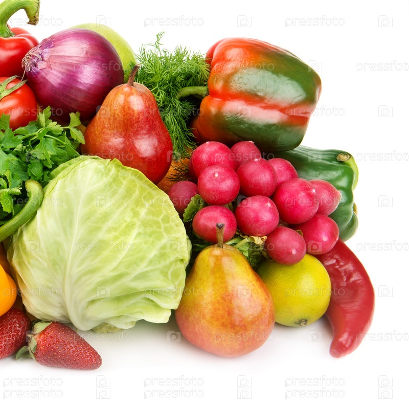 Набор фруктов и овощей, изолированный на белом фоне