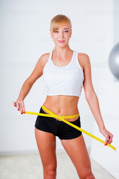 Блондинка измеряет талию