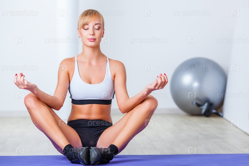 Женщина сидит в позе лотоса