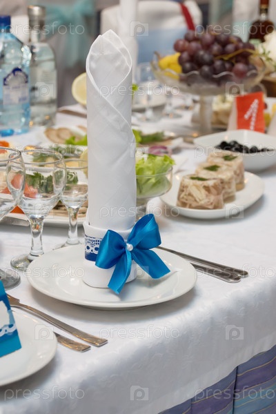 Сервировка в белых и синих цветах