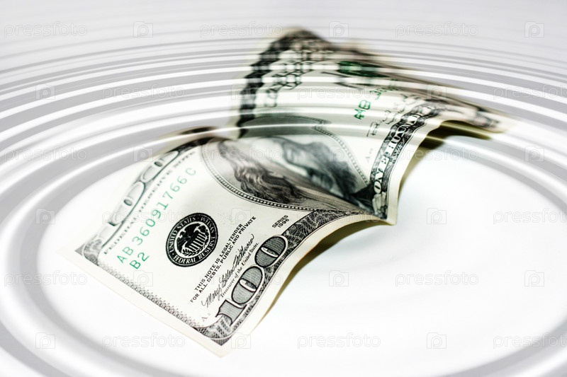 Стодолларовая купюра в воде