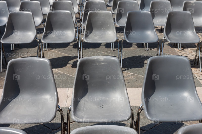 Пустые серые пластиковые сиденья