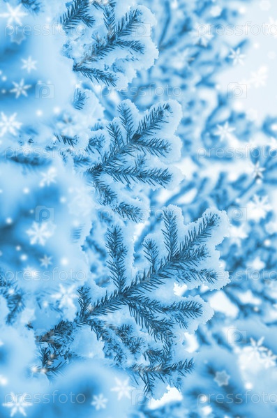Фон с заснеженными еловыми ветками