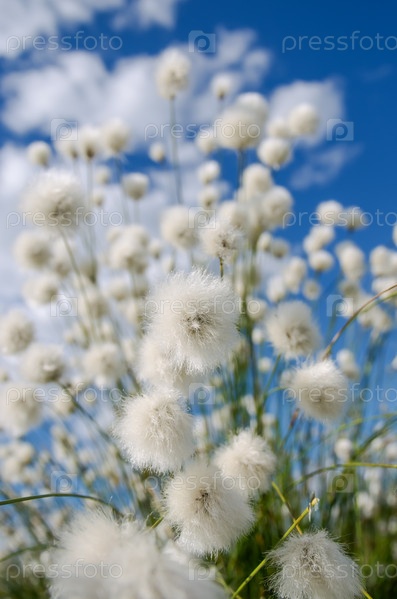 Пушица на фоне неба с облаками