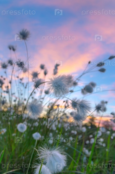 Пушица на фоне закатного неба