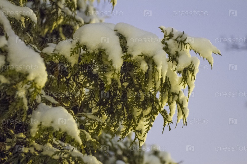 Ветка туи под снегом