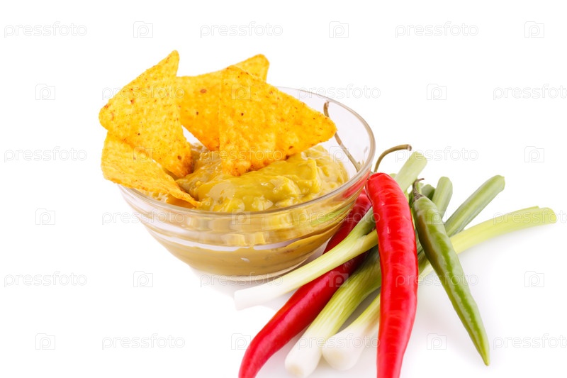 Начос, соус гуакамоле и овощи