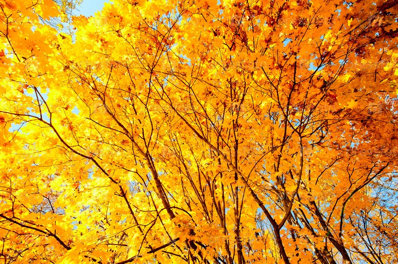 Желтые кленовые листья на ветвях