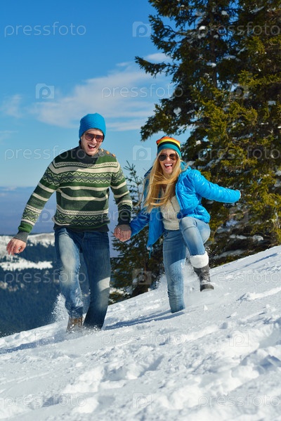 Молодая пара в зимнем снегу