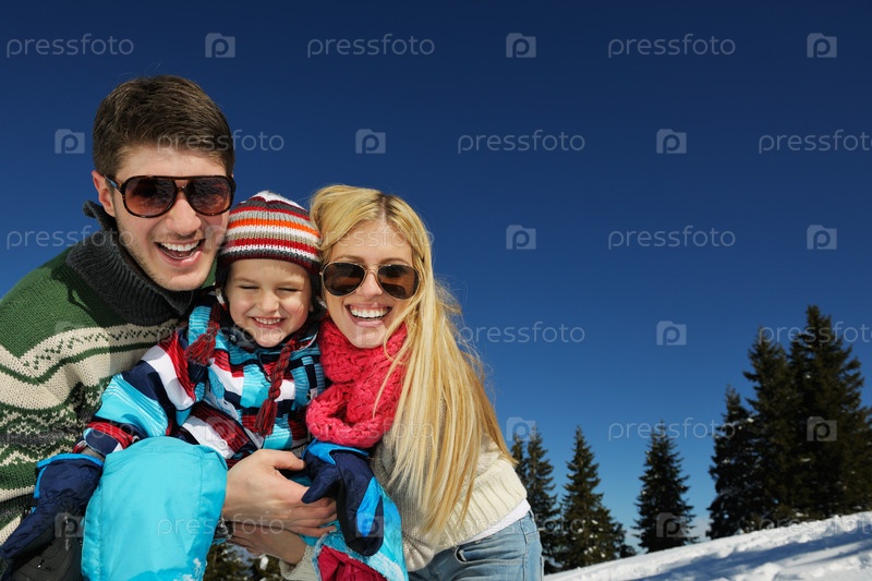 Семья отдыхает на свежем воздухе зимой