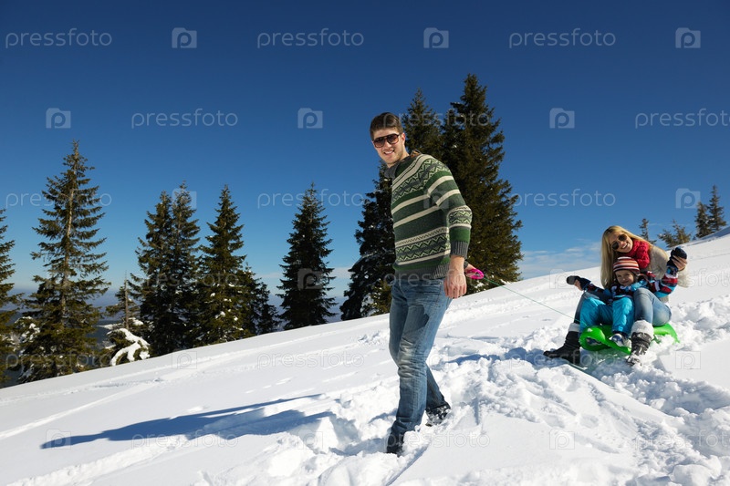 Семья отдыхает на свежем воздухе зимой