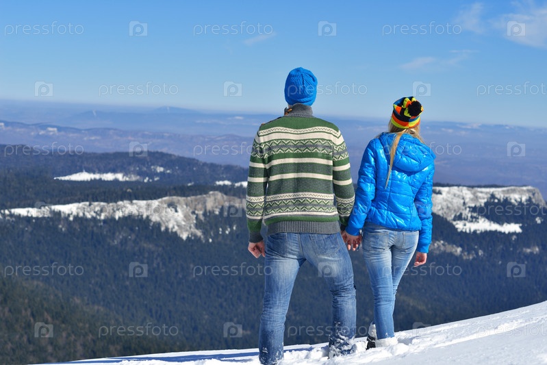 Молодая пара на свежем воздухе зимой