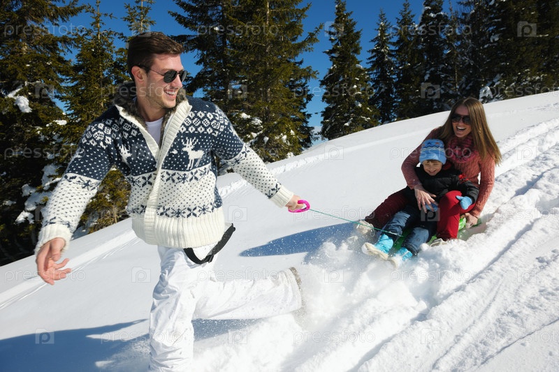 Семья отдыхает на свежем воздухе зимой