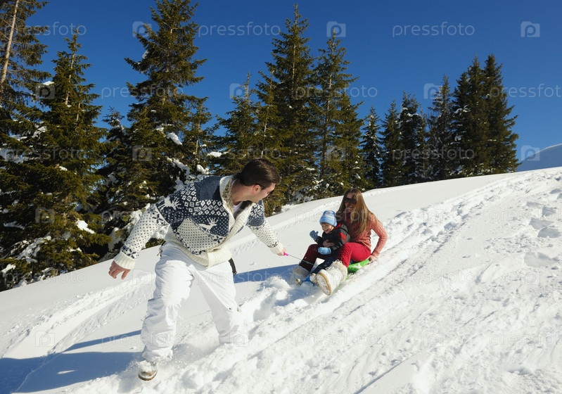 Семья отдыхает на свежем воздухе зимой