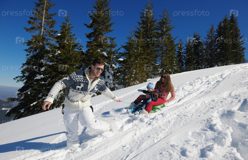 Семья отдыхает на свежем воздухе зимой