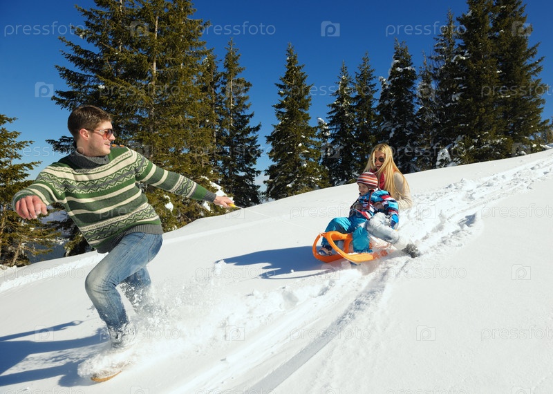 Семья отдыхает на свежем воздухе зимой
