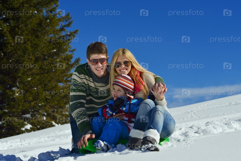 Семья отдыхает на свежем воздухе зимой
