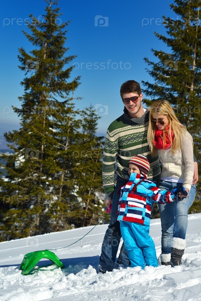 Семья отдыхает на свежем воздухе зимой