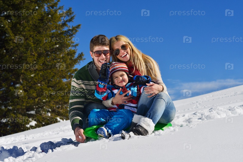 Семья отдыхает на свежем воздухе зимой