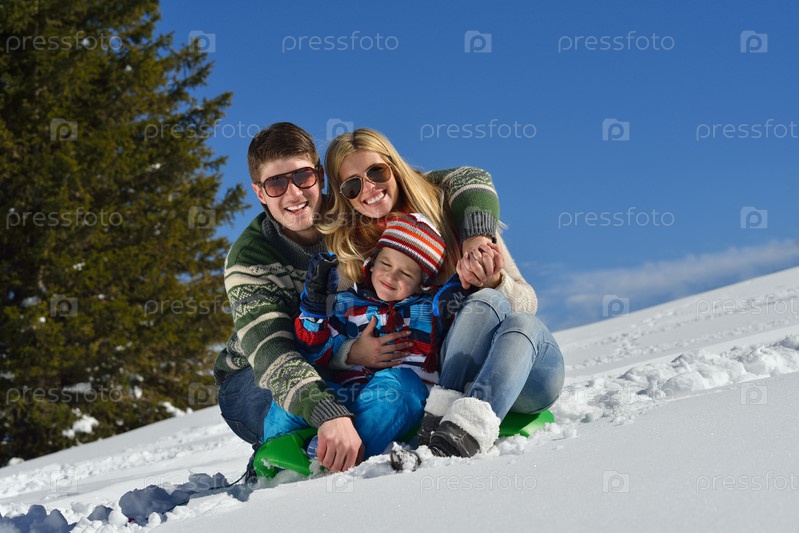Семья отдыхает на свежем воздухе зимой