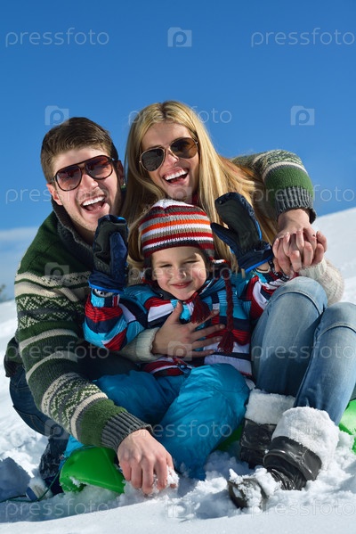 Семья отдыхает на свежем воздухе зимой