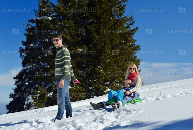 Семья отдыхает на свежем воздухе зимой