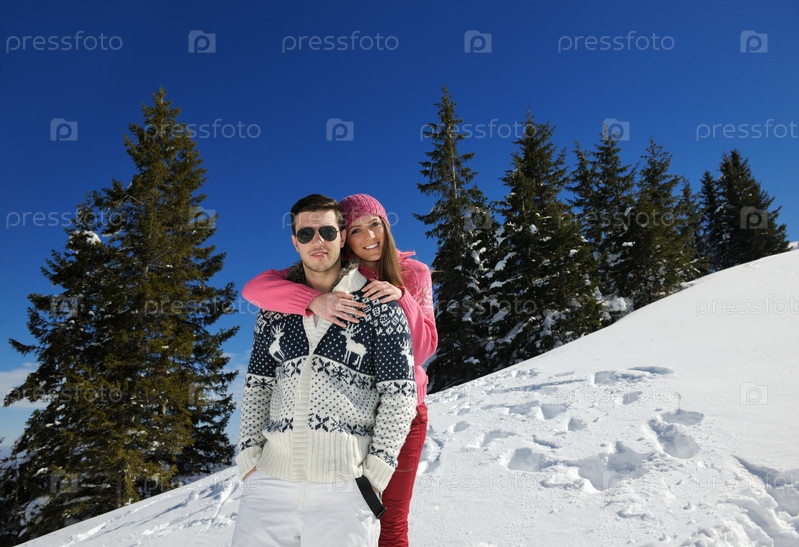 Молодая пара на свежем воздухе зимой