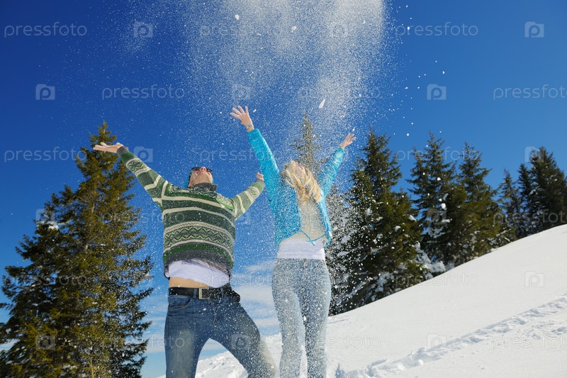 Молодая пара отдыхает на свежем воздухе зимой