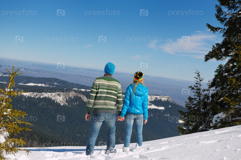 Молодая пара отдыхает на свежем воздухе зимой